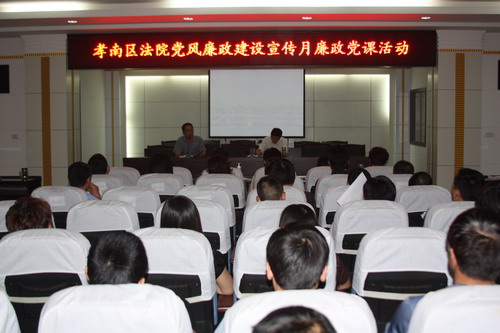 院领导讲授的廉政专题党课内容丰富、意义深刻,使全院干警接受了一次生动而又深刻的廉政教育,引起了干警的共鸣,收到了较好的效果。党课结束后,全院干警还观看了有关警示教育的记录片。