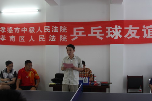 5月30日,孝感市中级人民法院与孝南区法院在区法院卧龙法庭举行了一场乒乓球友谊赛,两级法院14名乒乓球爱好者参加了比赛。孝感市中级人民法院党组书记、院长李小菊等多位党组成员亲临比赛现场观看比赛。