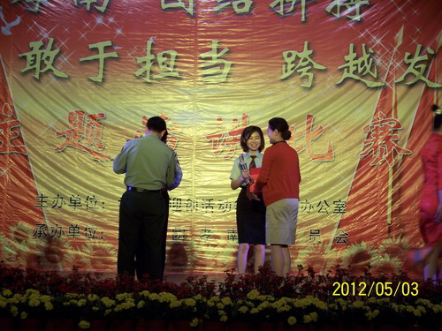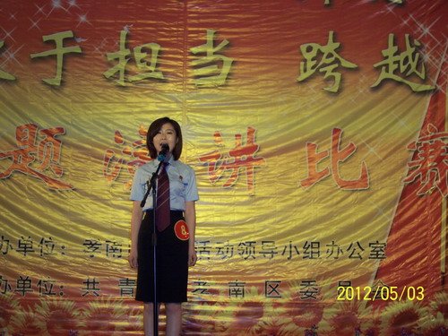 5月3日,孝南区举办迎“五四”暨“热爱孝南、团结拼搏、敢于担当、跨越发展”主题演讲比赛,孝南法院干部罗琳参加演讲比赛决赛并取得了第二名的好成绩。区法院党组成员、工会主席刘光辉带领全院30余名青年干警到区大礼堂观看比赛。